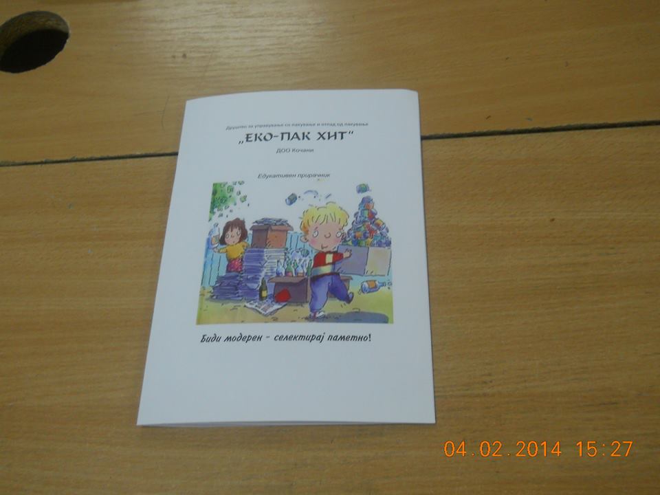 Во секоја паралелка одржани се по 2 часа, од кои на првиот час е одржана едукација преку презентирање на презентација под наслов Биди модерен-селектирај паметно, а на вториот час спроведена е интерактивна настава преку метод на дискусија и прикажување. Целта на часовите е да се едуцираат учениците за поимот разделно собирање на отпадот од пакувањата, како и негово правилно селектирање. Учениците треба да научат за правилното искористување на контејнерите во боја, а истовремено и дефинирање на процесот рециклирање, негов опис и значење. Учениците се запознаваат со хартијата, пластиката, стаклото, металот и дрвото како видови материјали, нивен начин на добивање и заштедата која произлегува од нивното рециклирање.