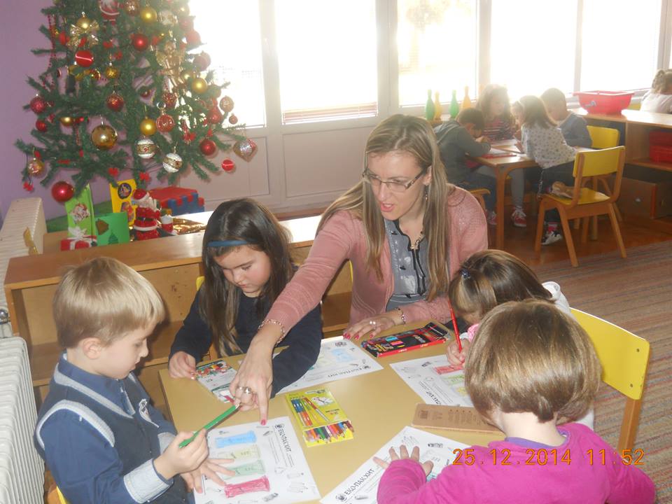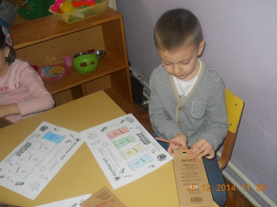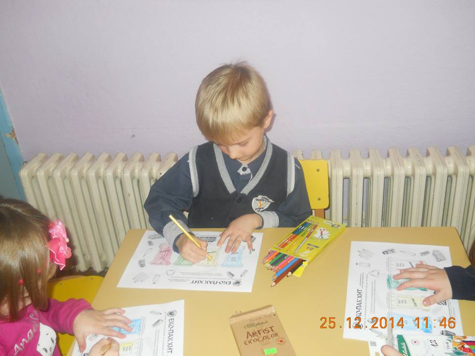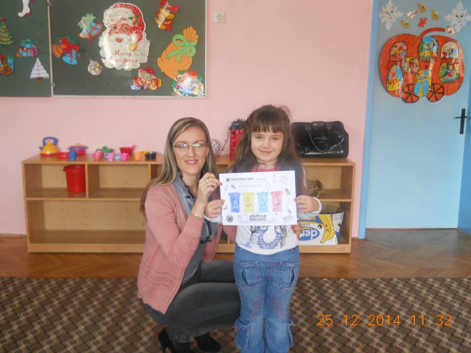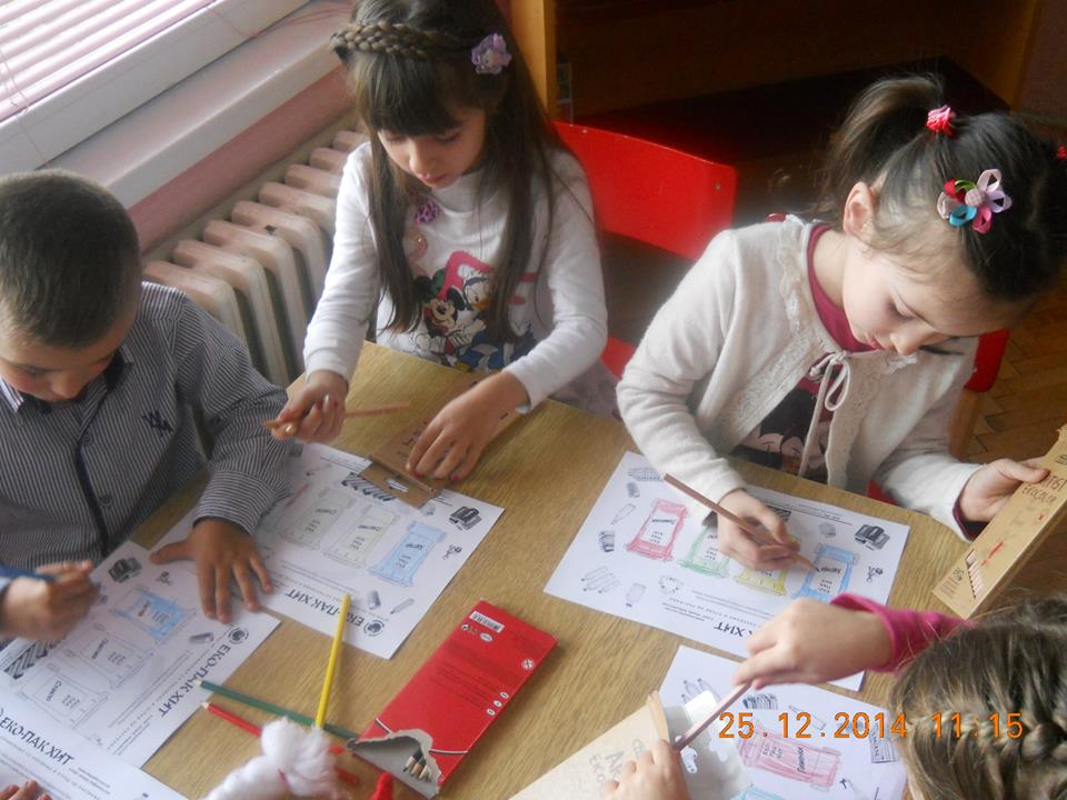 Во четирите клона на градинката, во присуство на децата од најголемата воспитна група одржани се по 2 часа, од кои на првиот час е одржана едукација преку презентирање на презентација под наслов Биди модерен-селектирај паметно, а на вториот час спроведена е интерактивна настава преку метод на дискусија и прикажување. Целта на часовите е да се едуцираат најмладите за поимот разделно собирање на отпадот од пакувањата, како и негово правилно селектирање. Дечињата треба да научат за правилното искористување на контејнерите во боја, а истовремено и дефинирање на процесот рециклирање, негов опис и значење. Дечињата се запознаваат со хартијата, пластиката, стаклото, металот и дрвото како видови материјали, нивен начин на добивање и заштедата која произлегува од нивното рециклирање.
