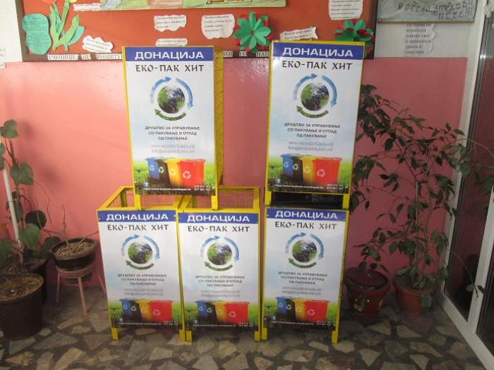 Компанијата за управување со пакување и отпад од пакување ЕКО-ПАК ХИТ ДОО Кочани, денес, 23 Декември 2014 година, го посети Основното Училиште Малина Поп Иванова од Кочани при што оствари две донации. Донираше пет канти за отпадоци кои ќе бидат поставени во училишниот двор. Во склоп на кампањата Биди модерен – селектирај паметно и како почеток на соработката со училиштето, која е од поширок интерес ја остваруваме оваа донација, која е одговор на барањето на ученичката заедница при училиштето за поставување на корпи за отпаден материјал. Со оваа донација очекуваме да придонесеме во правилно собирање на отпадниот материјал и со тоа полесно одржување на хигиената во дворот, кој е со површина од 9 000 м/2.