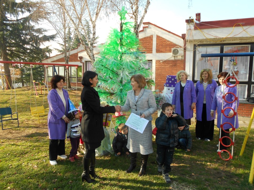 Доделување на награди по повод новогодишниот конкурс на ЕКО-ПАК ХИТ ДОО Кочани за изработка на новогодишна елка од амбалажен отпад.
